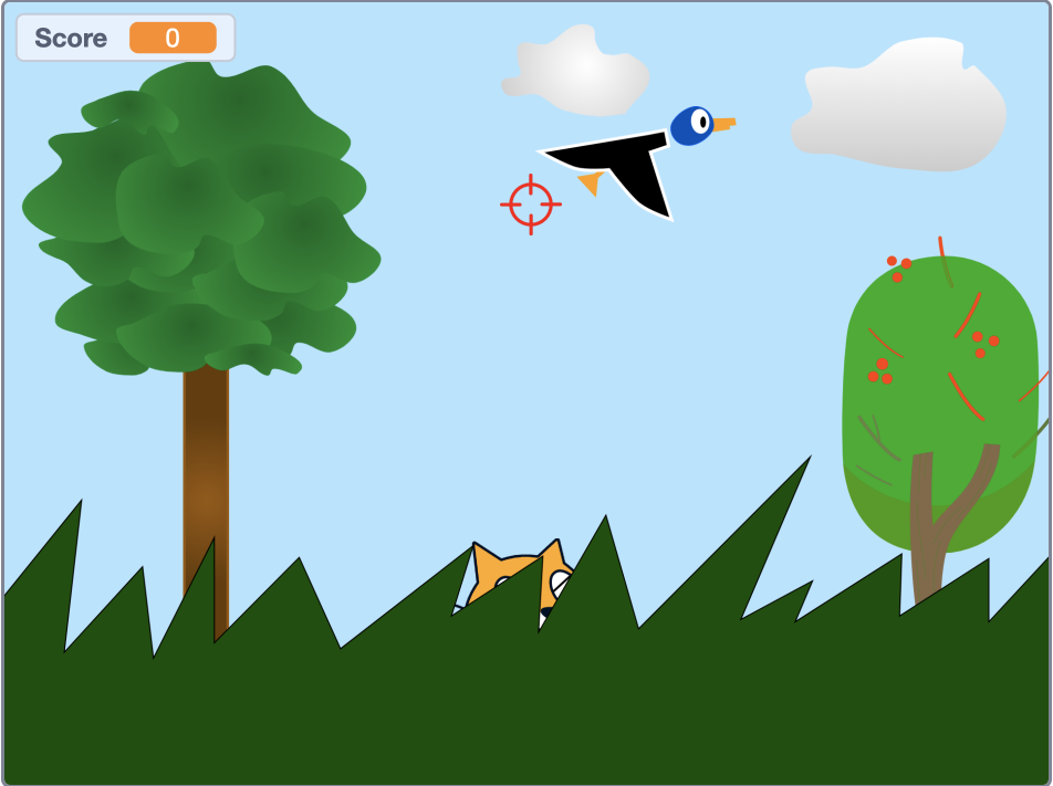 - Lập trình điều khiển chú chim bay trên trời và ăn trái cây